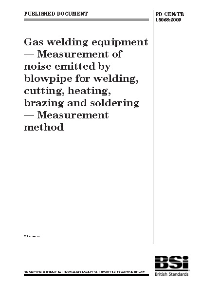 Thermal cutting;Soldering;Brazing;Noise (environmental);Blowpipes;Gas welding;Gas-welding equipment;Welding equipment;Acoustic measurement