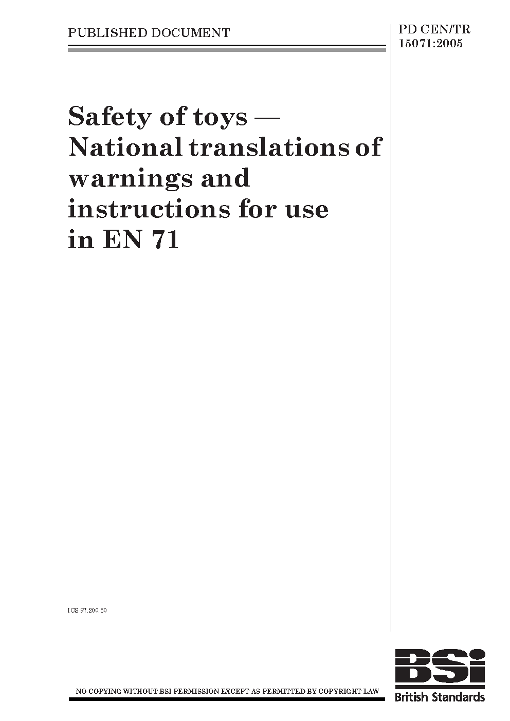 Safety of toys. National translations of warnings and instructions for use in the EN 71 series