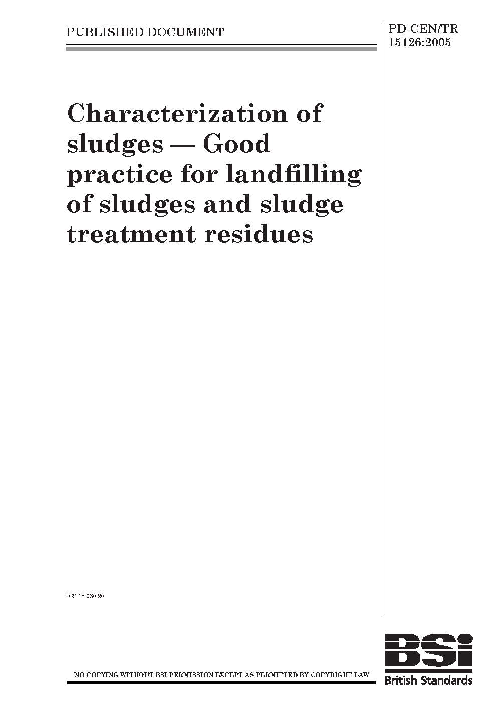 Characterization of sludges. Good practice for land filling of sludgesan d sludge treatment residues