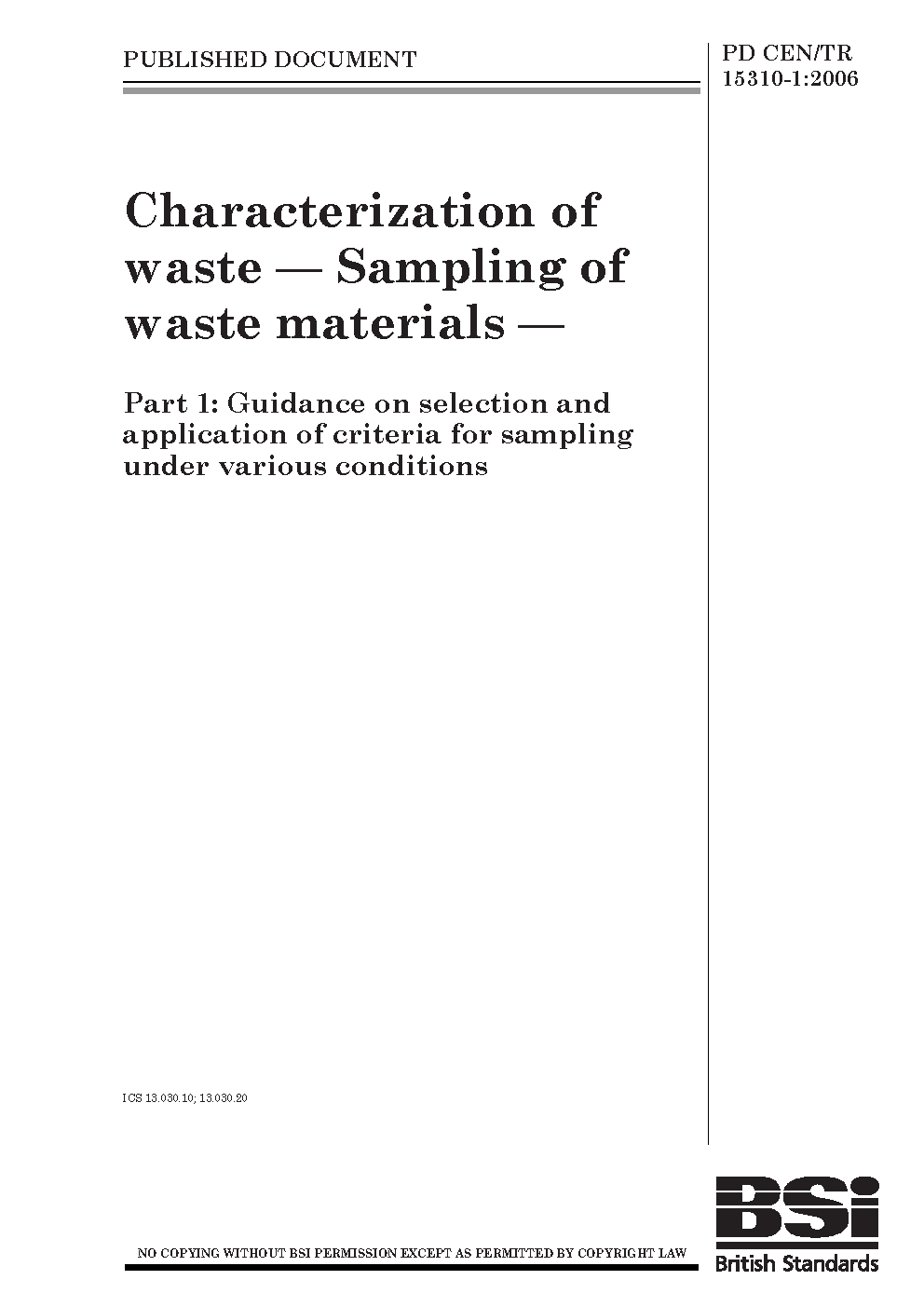 PD CEN/TR 15310-1:2006