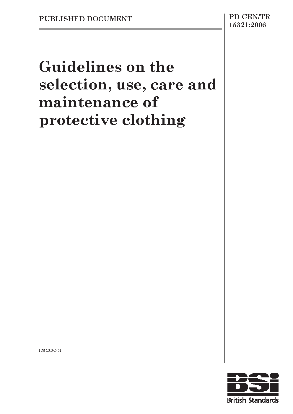 Guidelines on the selection, use, care and maintenance of protective clothing