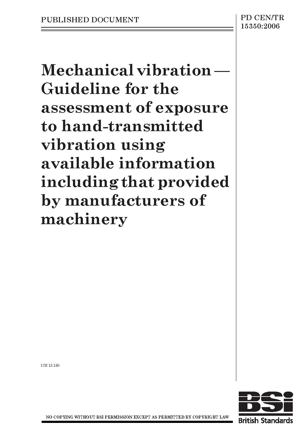 Mechanical vibration. Guideline for the assessment of exposure to hand-transmitted vibration using available information including that provided by manufacturers of machinery