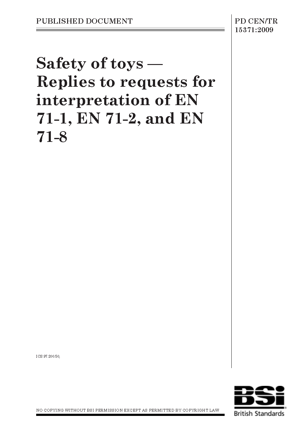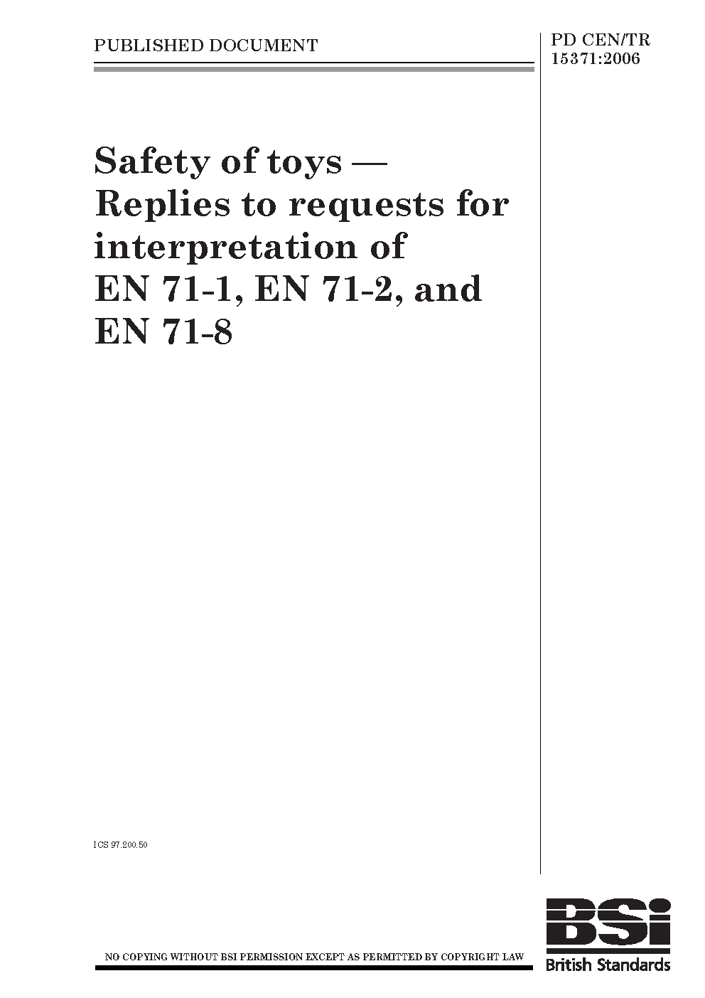 Safety of toys. Replies to requests for interpretation of EN 71-1, EN 71-2 and EN 71-8