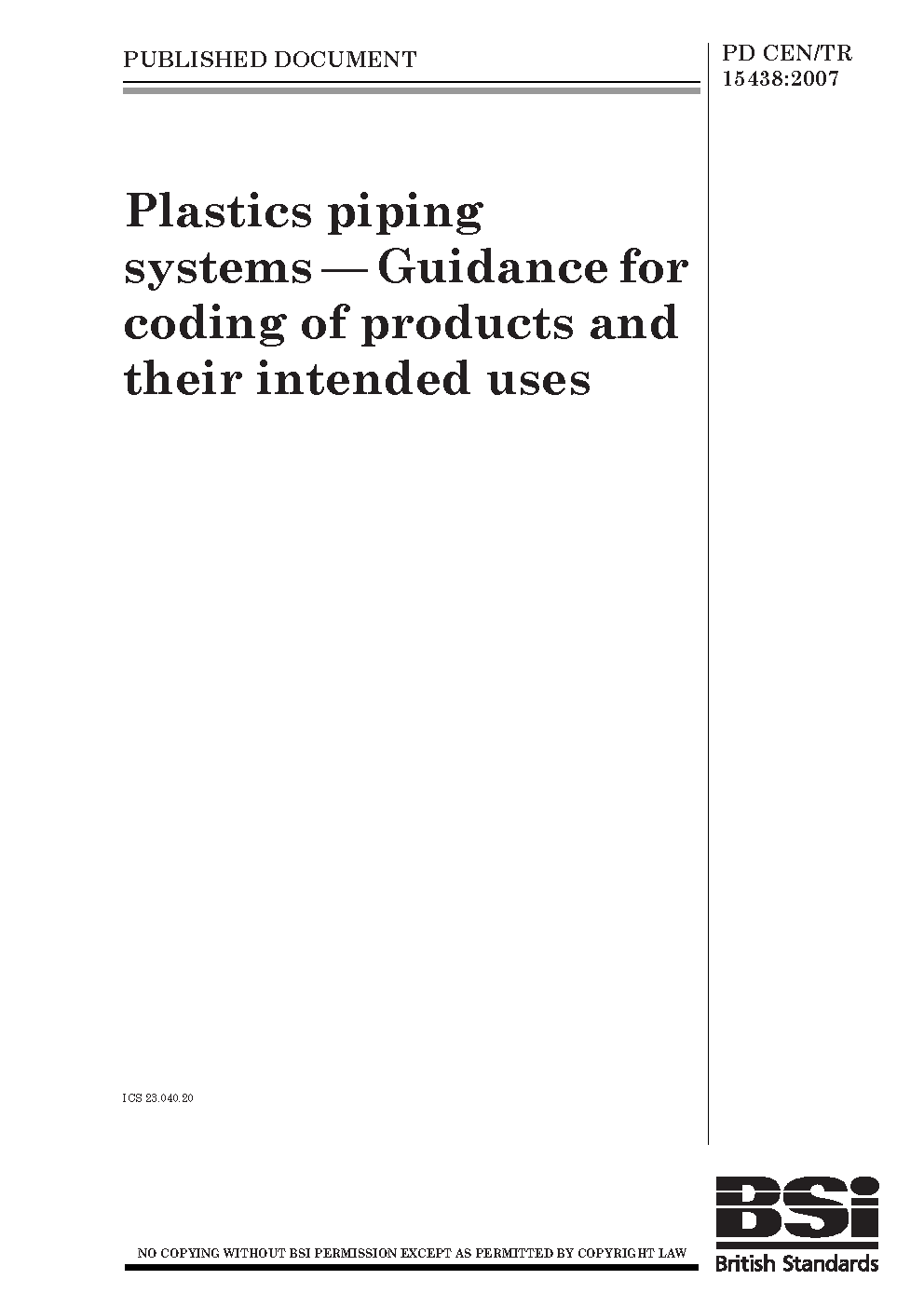 Plastics piping systems. Guidance for coding of products and their intended uses