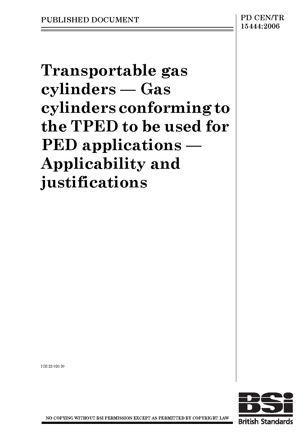 Transportable gas cylinders. Gas cylinders conforming to the TPED to be used for PED applications. Applicability and justifications