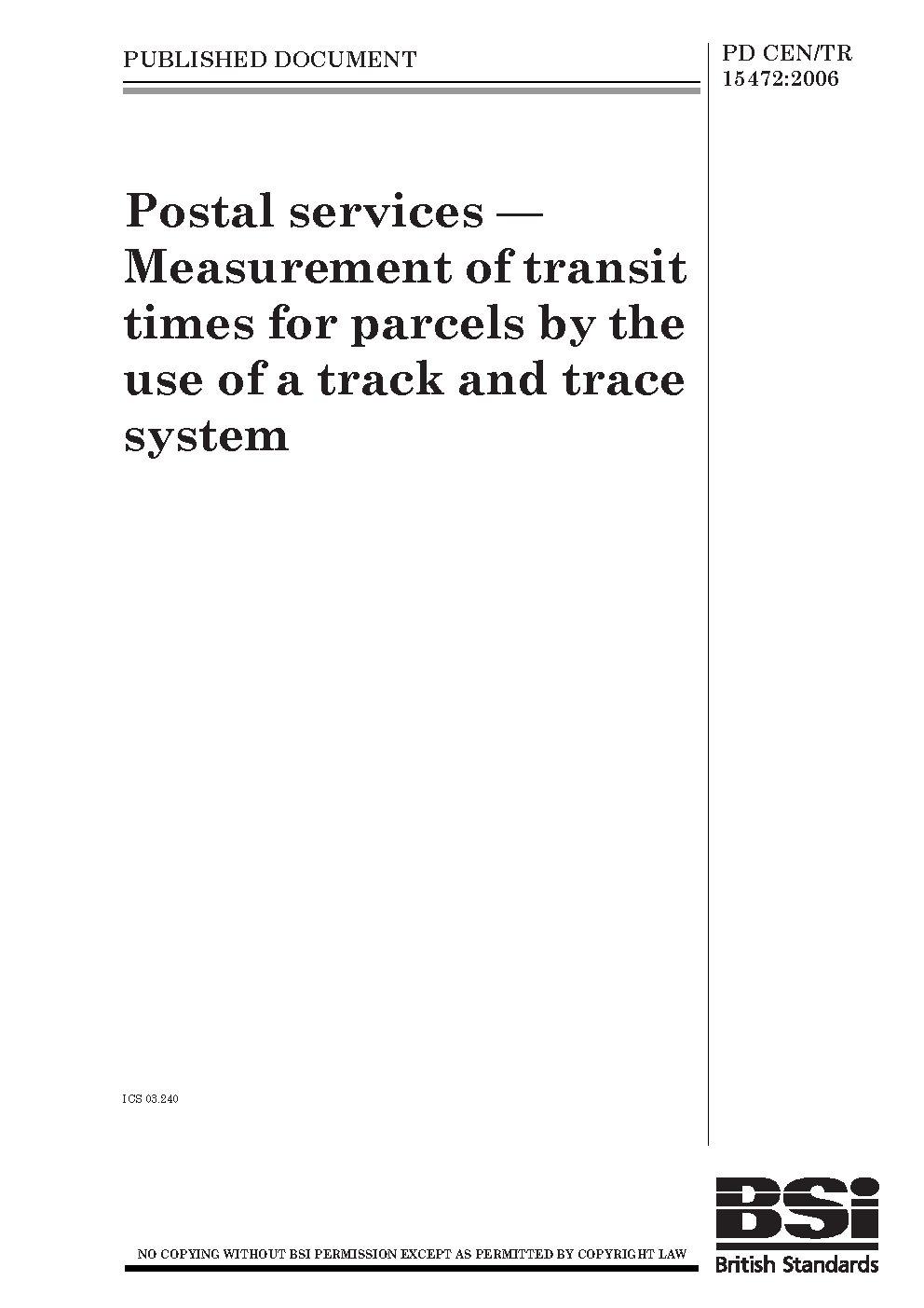 Postal services. Measurement of transit times for parcels by the use of a track and trace system