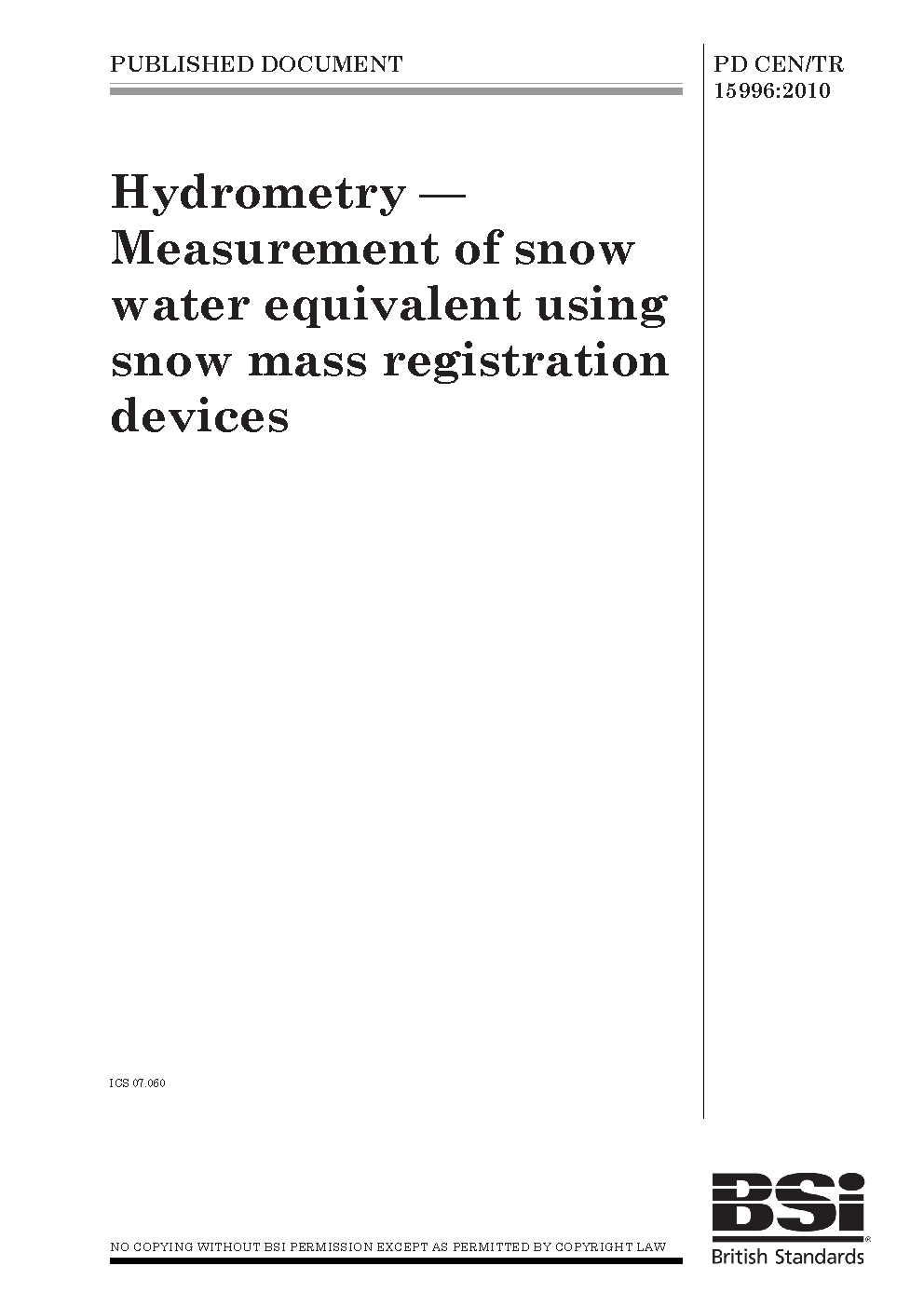 Hydrometry. Measurement of snow water equivalent using snow mass registration devices