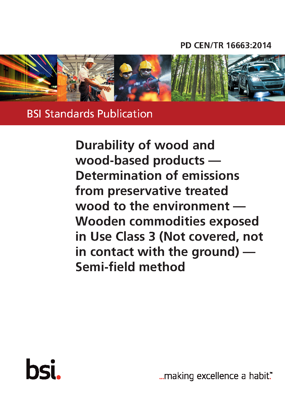 Durability of wood and wood-based products. Determination of emissions from preservative treated wood to the environment. Wooden commodities exposed in Use Class 3 (Not covered, not in contact with the ground). Semi-field method