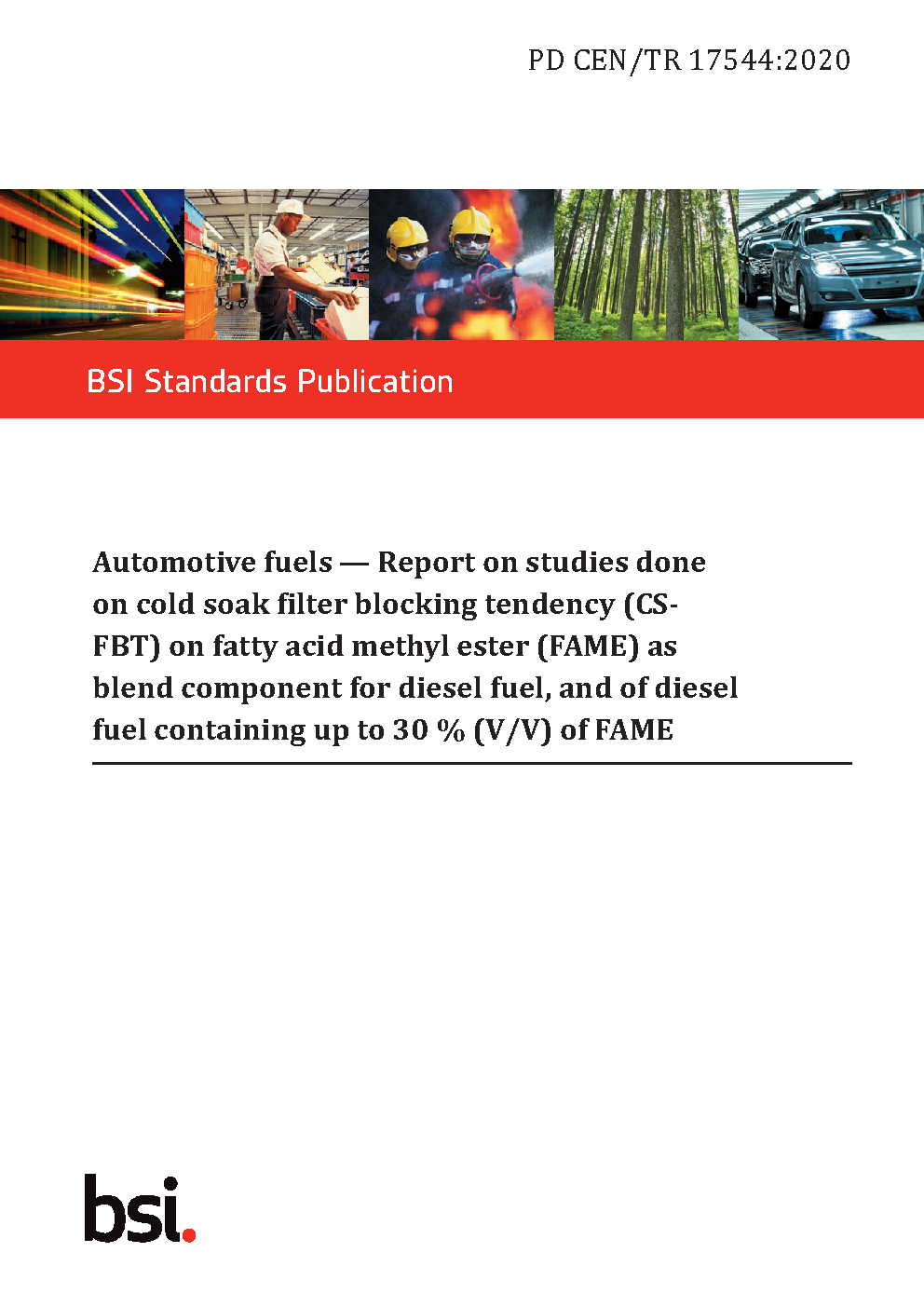 Automotive fuels. Report on studies done on cold soak filter blocking tendency (CS-FBT) on fatty acid methyl ester (FAME) as blend component for diesel fuel, and of diesel fuel containing up to 30 % (V/V) of FAME