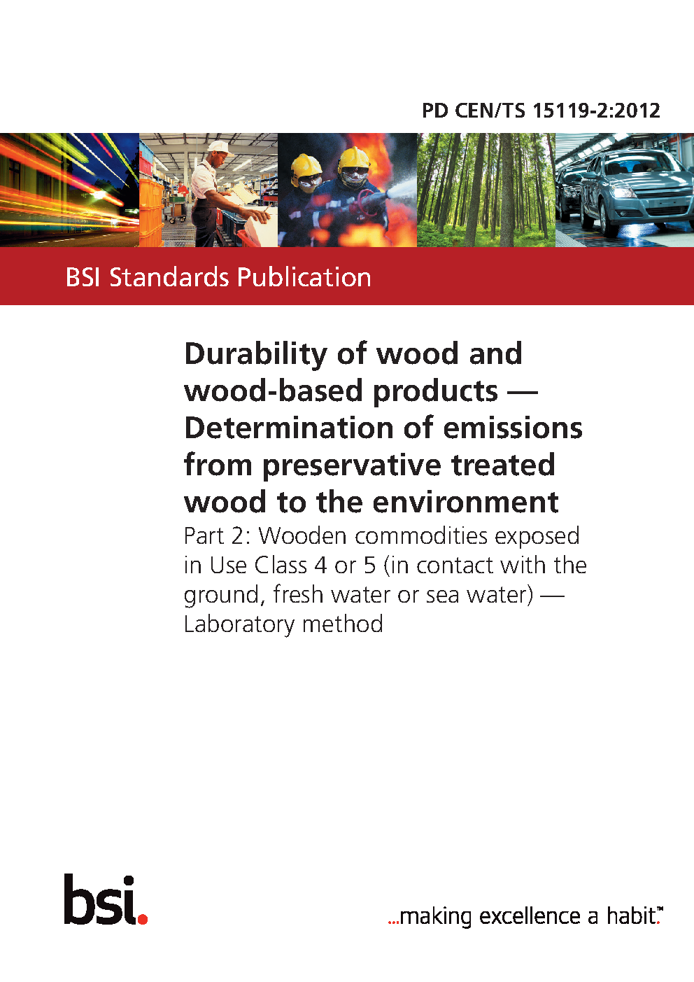 Durability of wood and wood-based products. Determination emissions from preservative treated to the environment Wooden commodities exposed in Use Class 4 or 5 (in contact with ground, fresh water sea water). Laboratory method