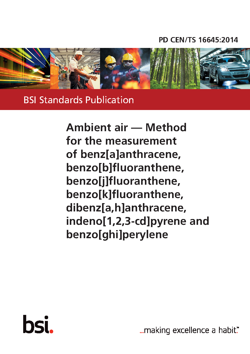 Ambient air. Method for the measurement of benz[a]anthracene, benzo[b]fluoranthene, benzo[j]fluoranthene, benzo[k]fluoranthene, dibenz[a,h]anthracene, indeno[1,2,3-cd]pyrene and benzo[ghi]perylene