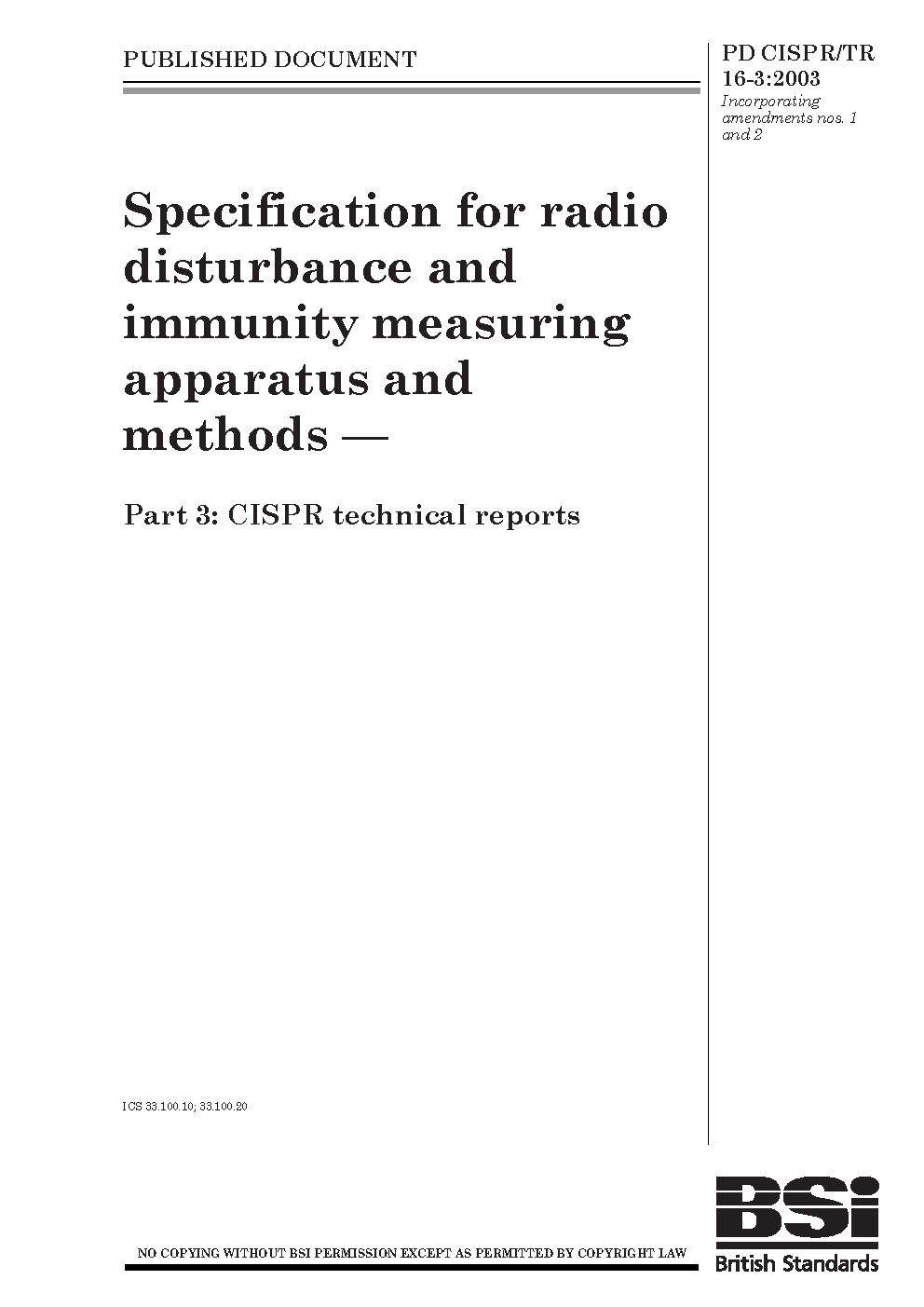 Specification for radio disturbance and immunity measuring apparatus methods CISPR technical reports