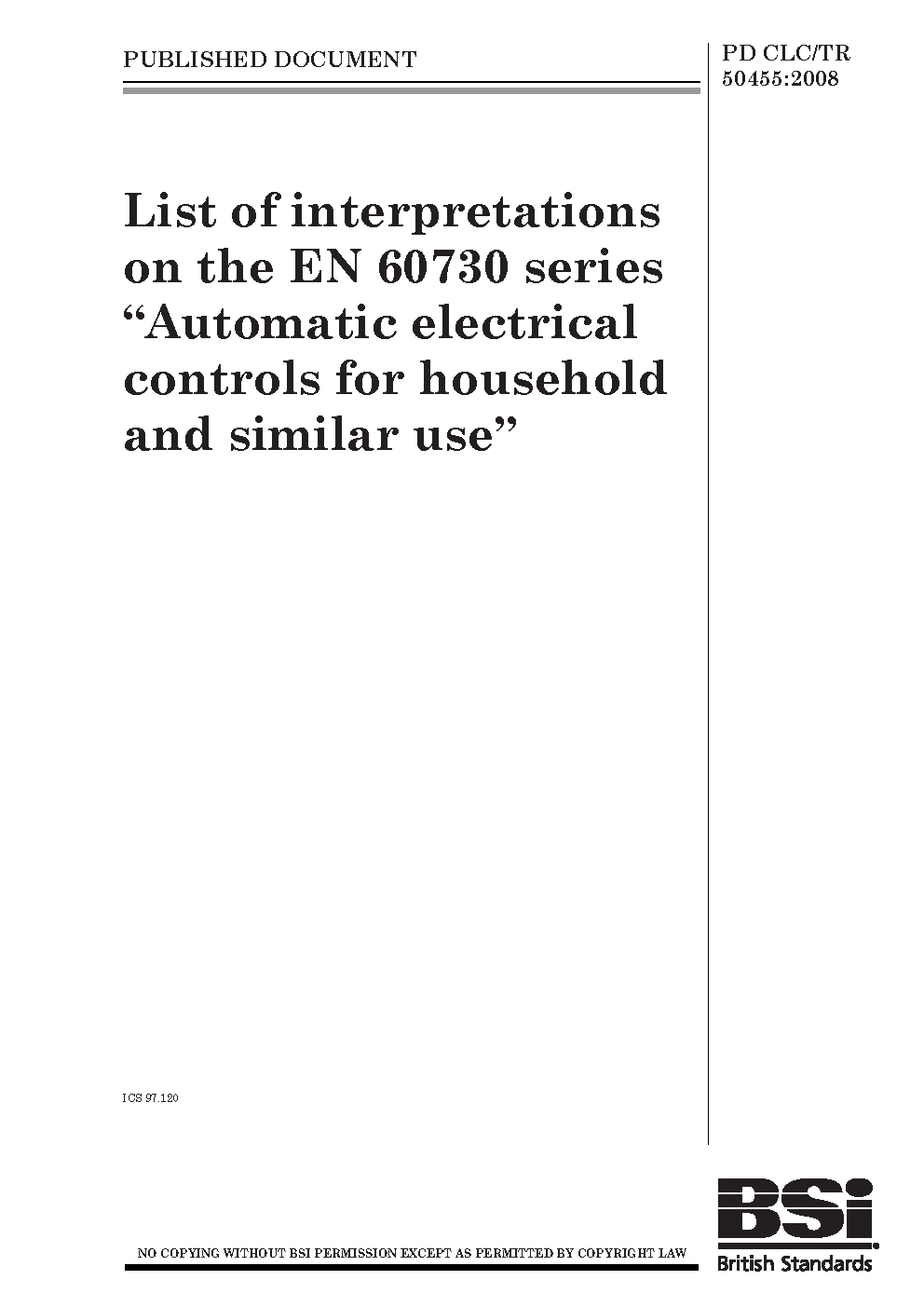 List of interpretations on the EN 60730 series "Automatic electrical controls for household and similar use"