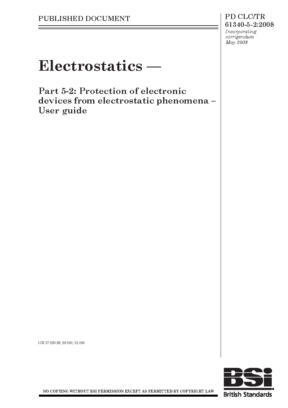 PD CLC/TR 61340-5-2:2008