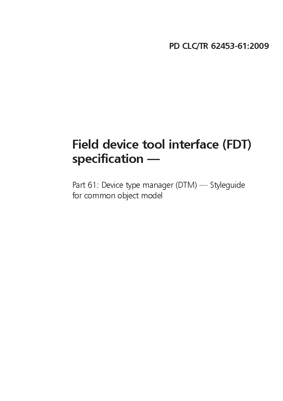 Field device tool interface (FDT) specification Device type manager (DTM). Styleguide for common object model