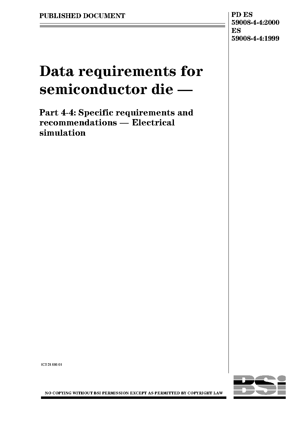 Data requirements for semiconductor die. Specific and recommendations Electrical simulation