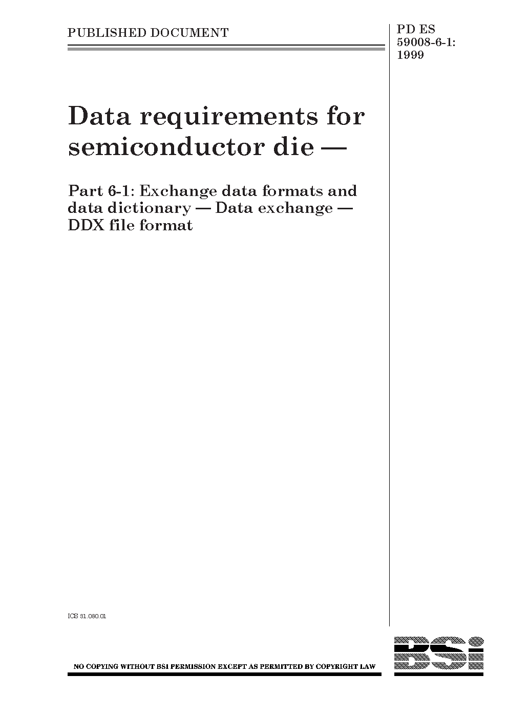 Data requirements for semiconductor die. Exchange data formats and dictionary exchange. DDX file format