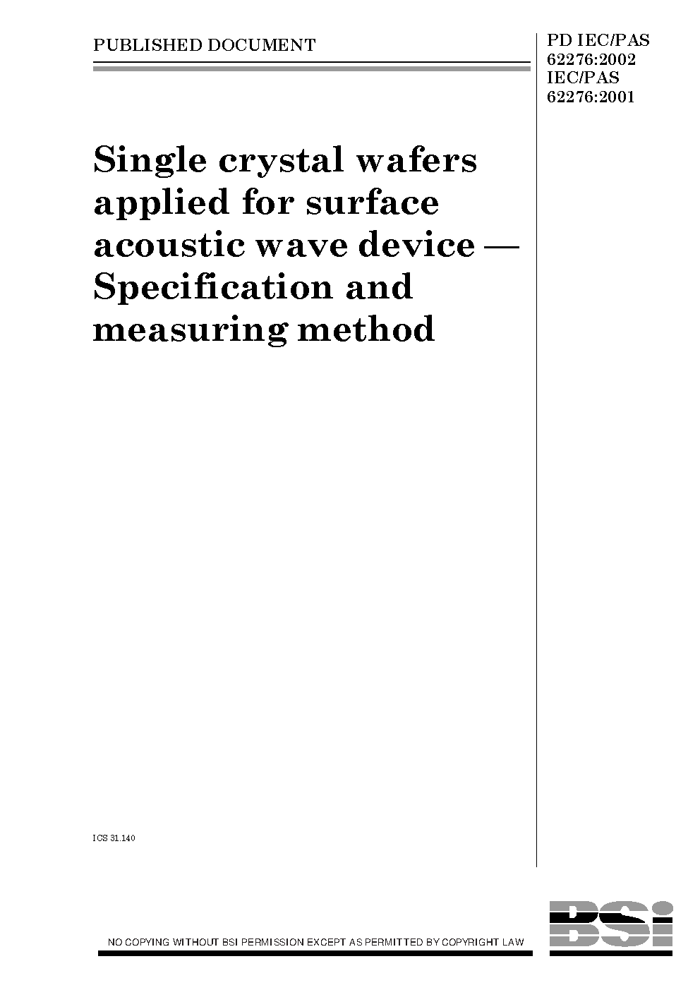 Single crystal wafers applied for surface acoustic wave device. Specification and measuring method