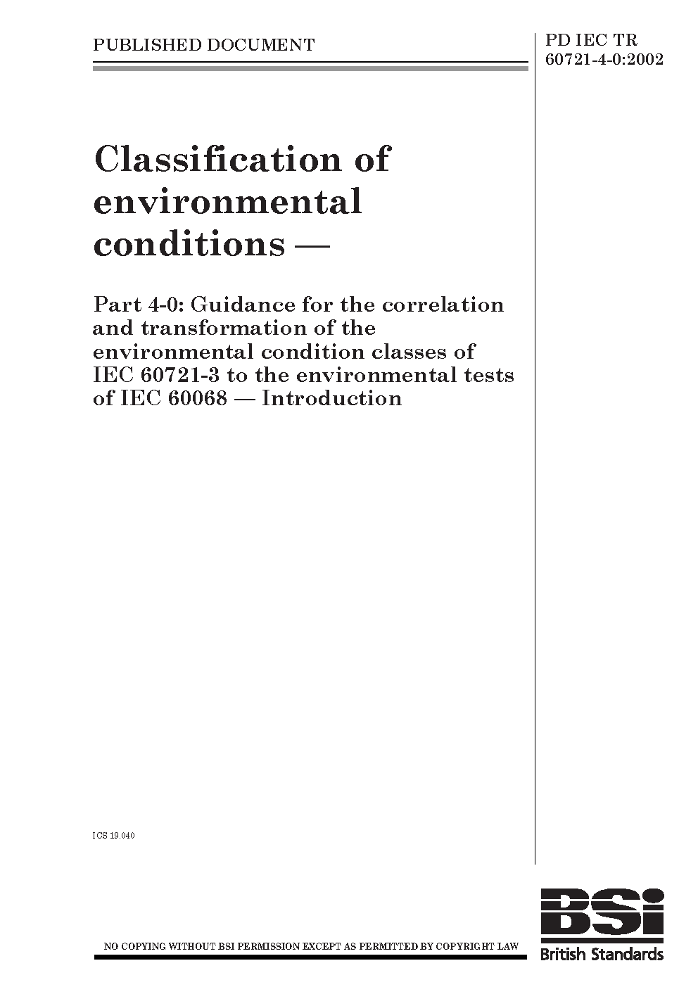 PD IEC/TR 60721-4-0:2002