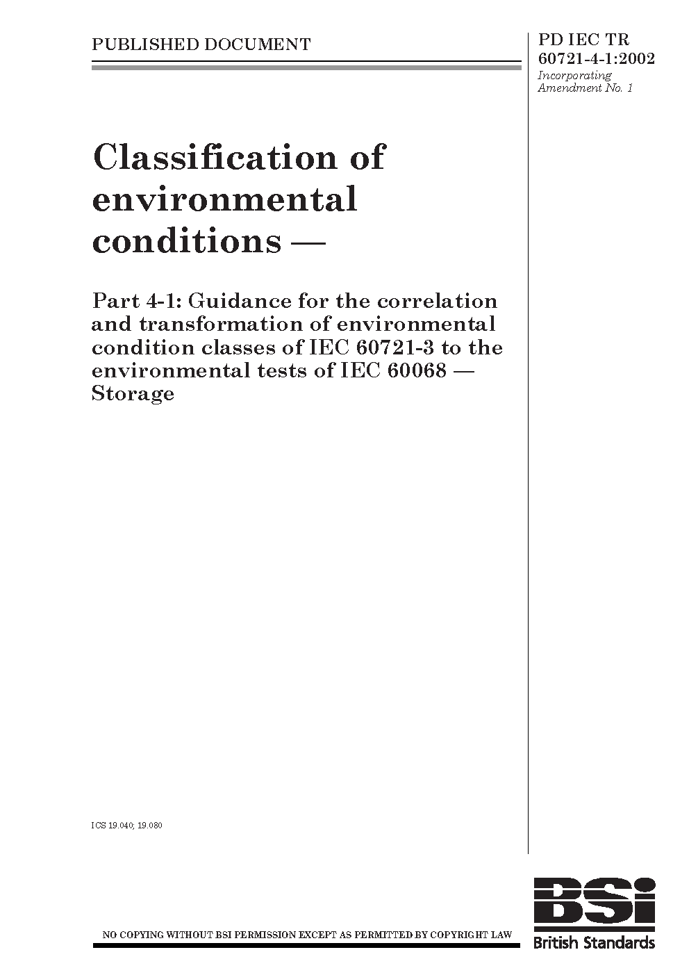 Classification of environmental conditions. Guidance for the correlation and transformation condition classes IEC 60721-3 to tests 60068 Storage