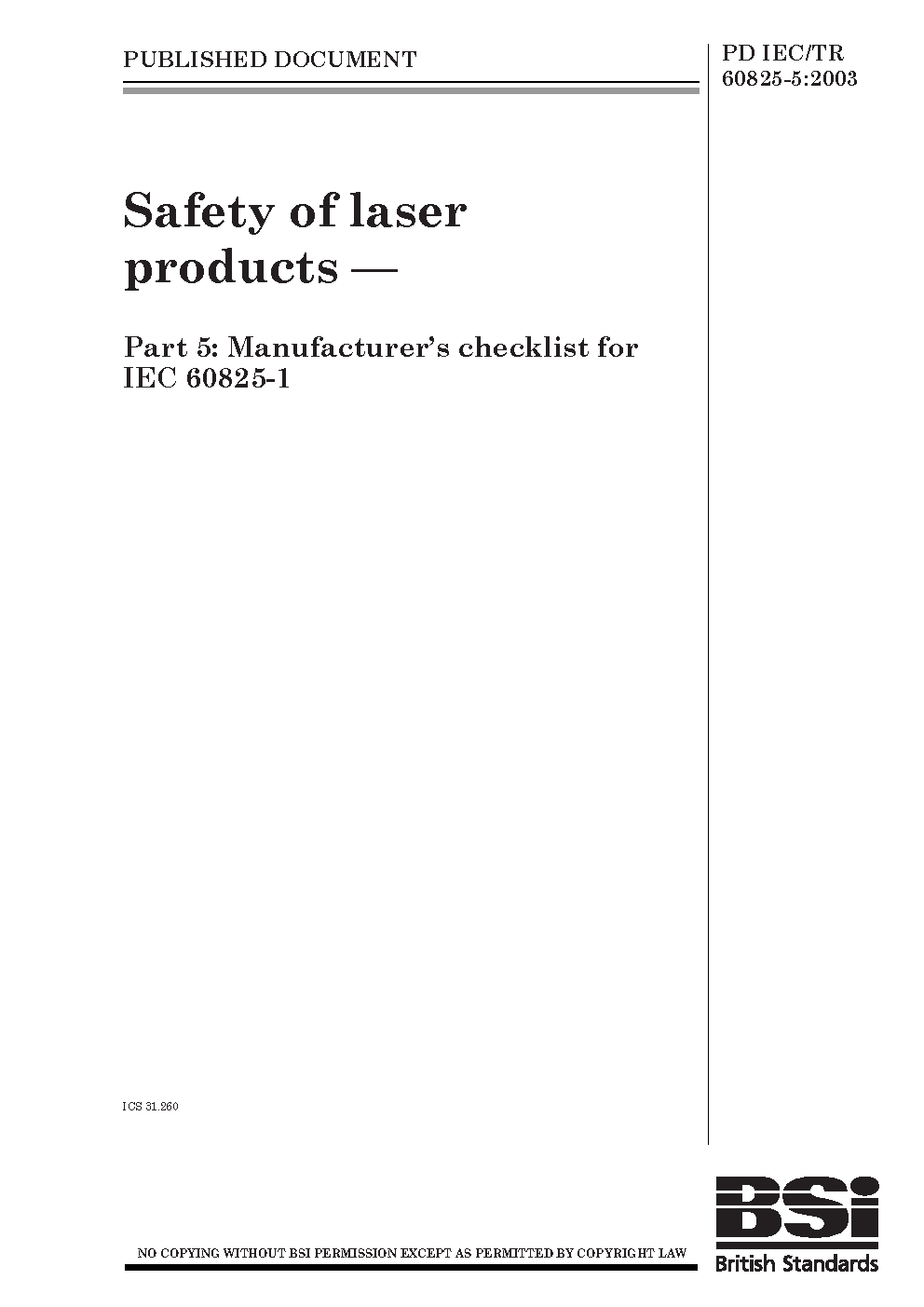 Safety of laser products Manufacturer’s checklist for IEC 60825-1