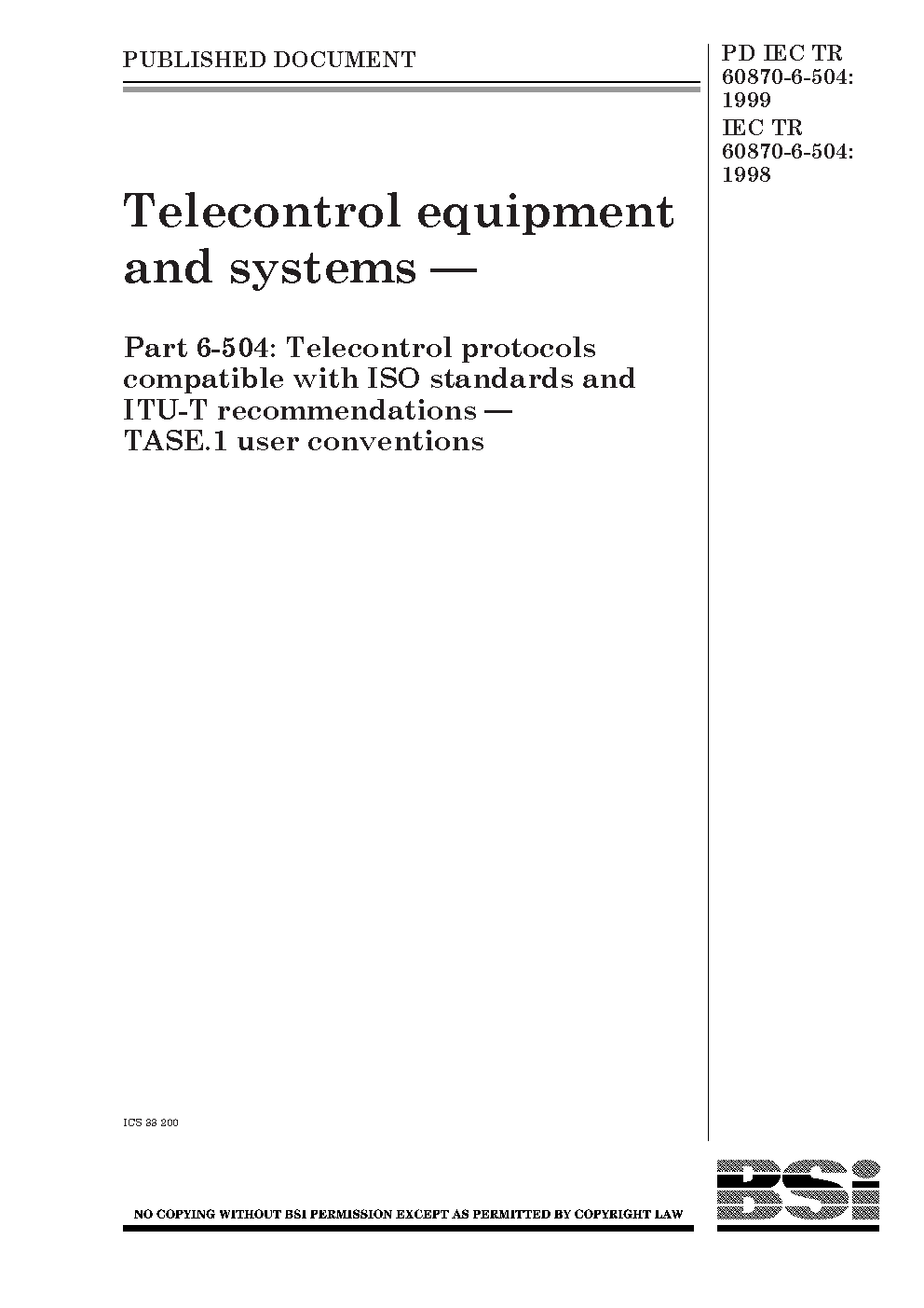 Telecontrol equipment and systems. protocols compatible with ISO standards ITU-T recommendations TASE.1 user conventions