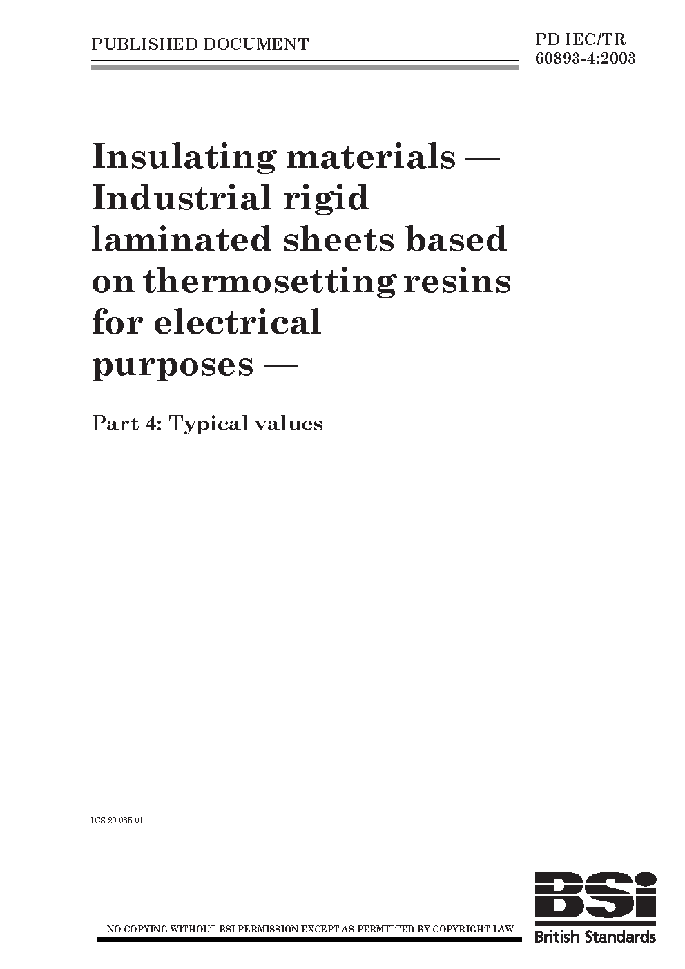 Insulating materials. Industrial rigid laminated sheets based on thermosetting resins for electrical purposes Typical values