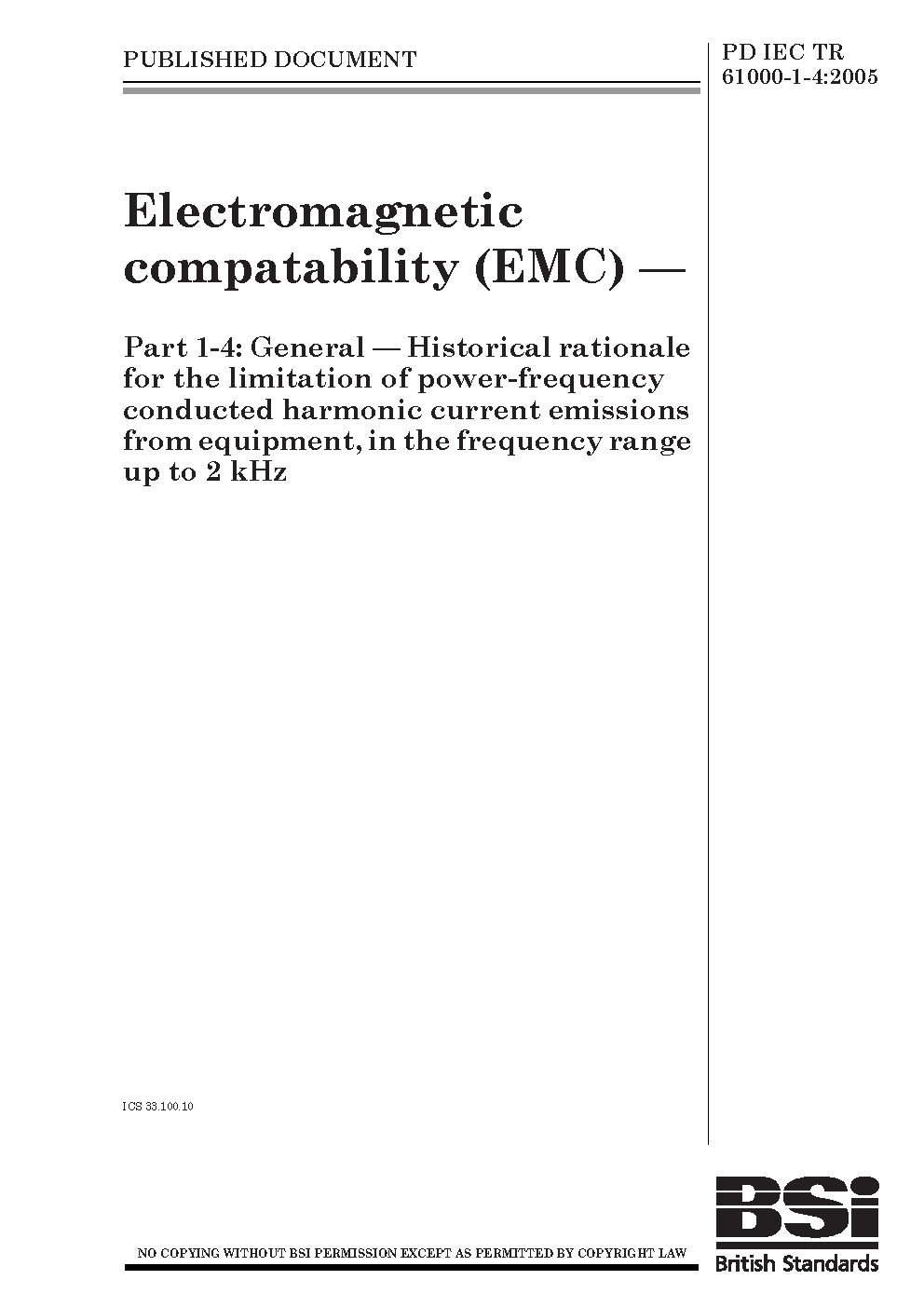 Electromagnetic compatibility (EMC) General Historical rationale for the limitation of power-frequency conducted harmonic current emmissions from equipment, in frequency range up to 2 kHz