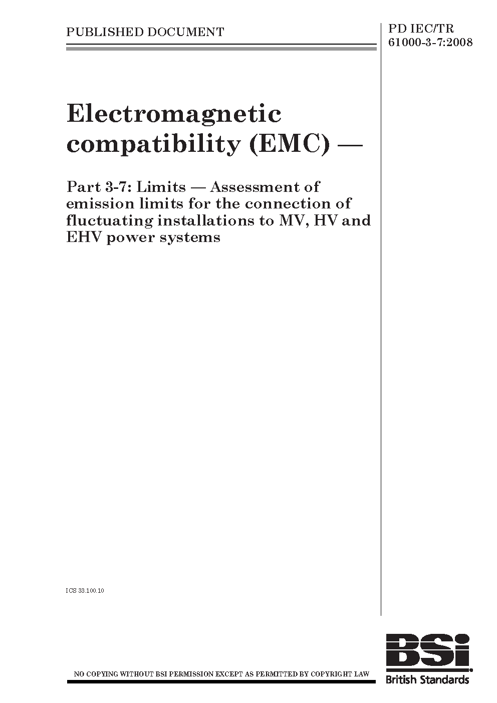 PD IEC/TR 61000-3-7:2008