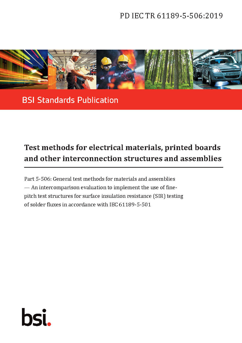 Test methods for electrical materials, printed boards and other interconnection structures assemblies General test materials assemblies. An intercomparison evaluation to implement the use of fine-pitch surface insulation resistance (SIR) testing solder fluxes in accordance with IEC 61189-5-501