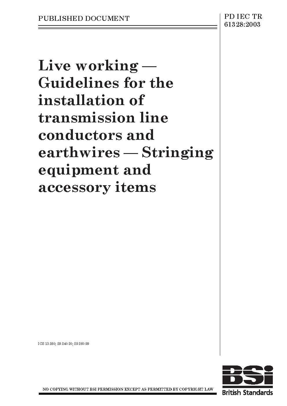 Live working. Guidelines for the installation of transmission and distribution line conductors and earth wires. Stringing equipment and accessory items