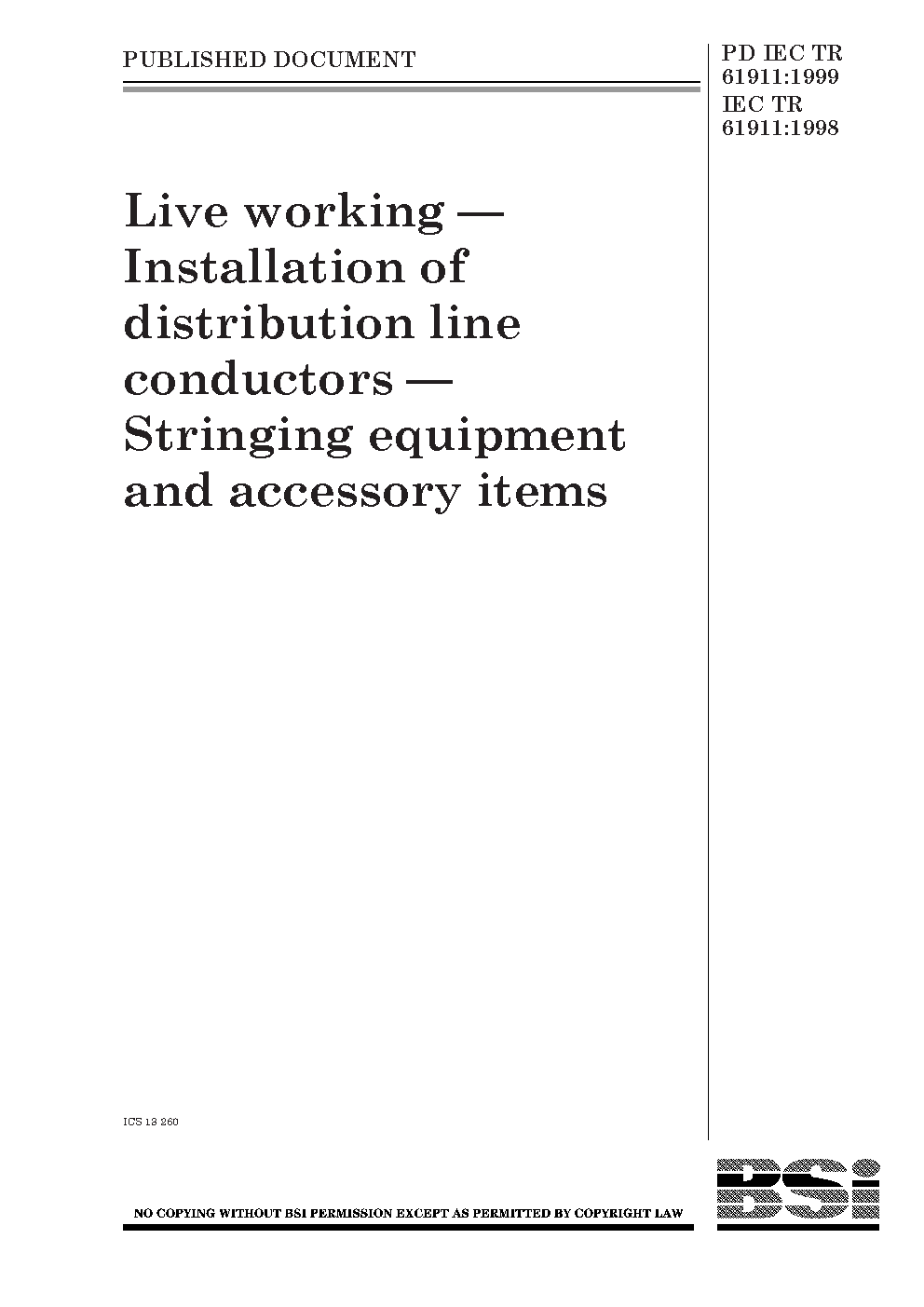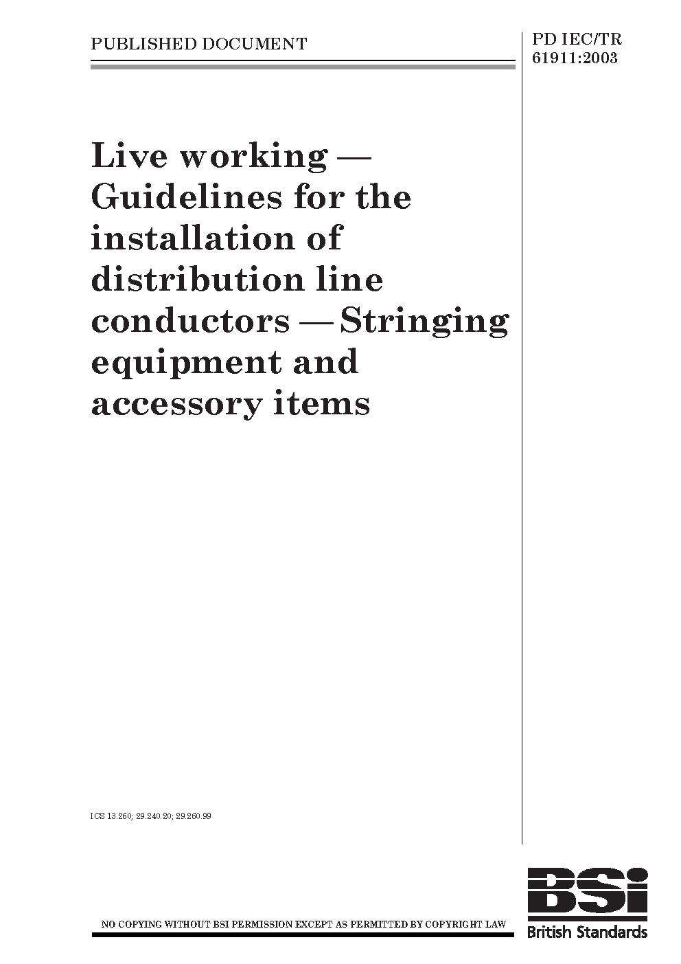 Live working. Guidelines for the installation of distribution line conductors. Stringing equipment and accessory items