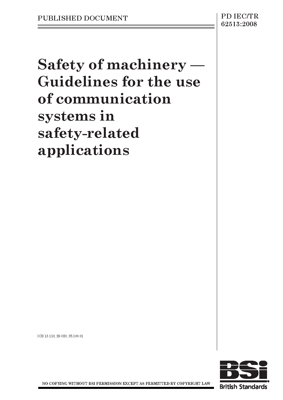 Safety of machinery. Guidelines for the use of communication systems in safety-related applications