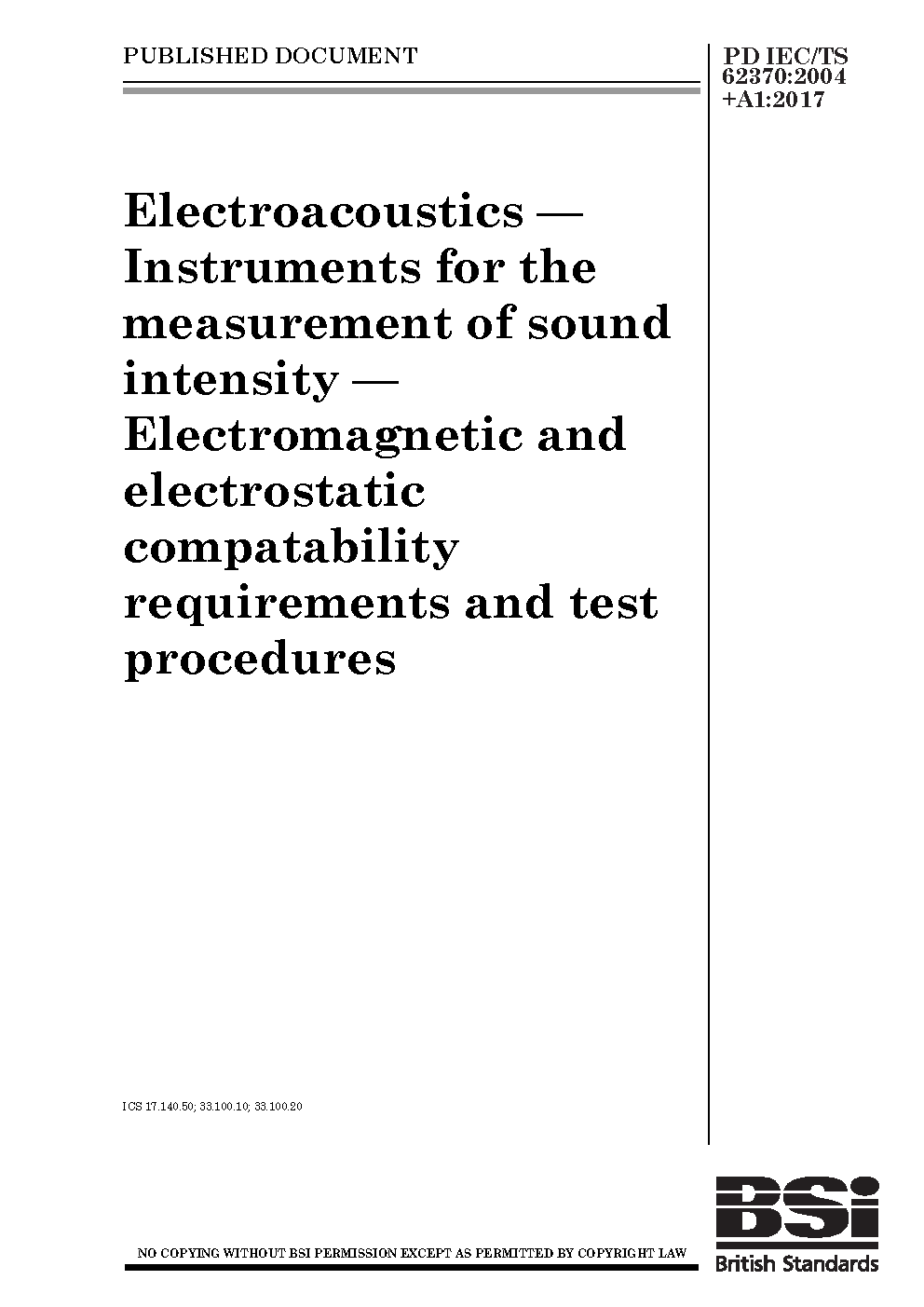 Electroacoustics. Instruments for the measurement of sound intensity. Electromagnetic and electrostatic compatibility requirements and test procedures