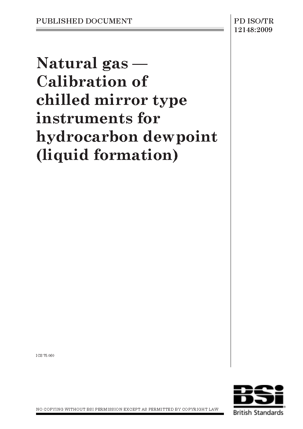 Natural gas. Calibration of chilled mirror type instruments for hydrocarbon dewpoint (liquid formation)