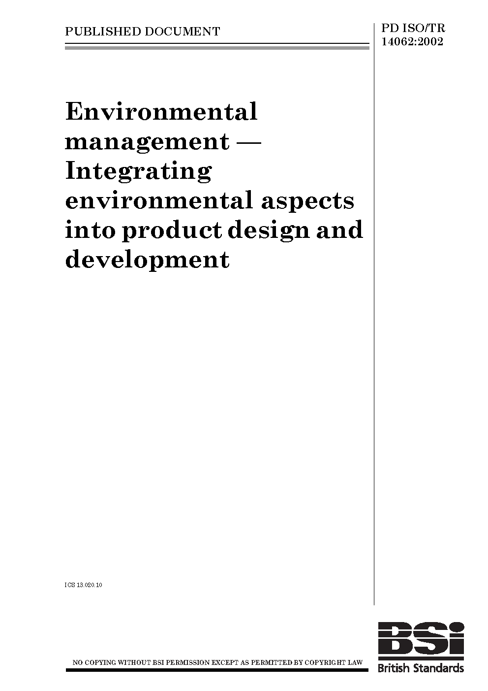 PD ISO/TR 14062:2002