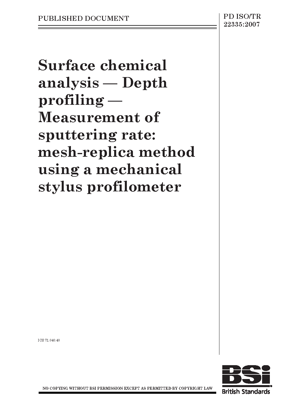 Surface chemical analysis. Depth profiling. Measurement of sputtering rate. Mesh-replica method using a mechanical stylus profilometer