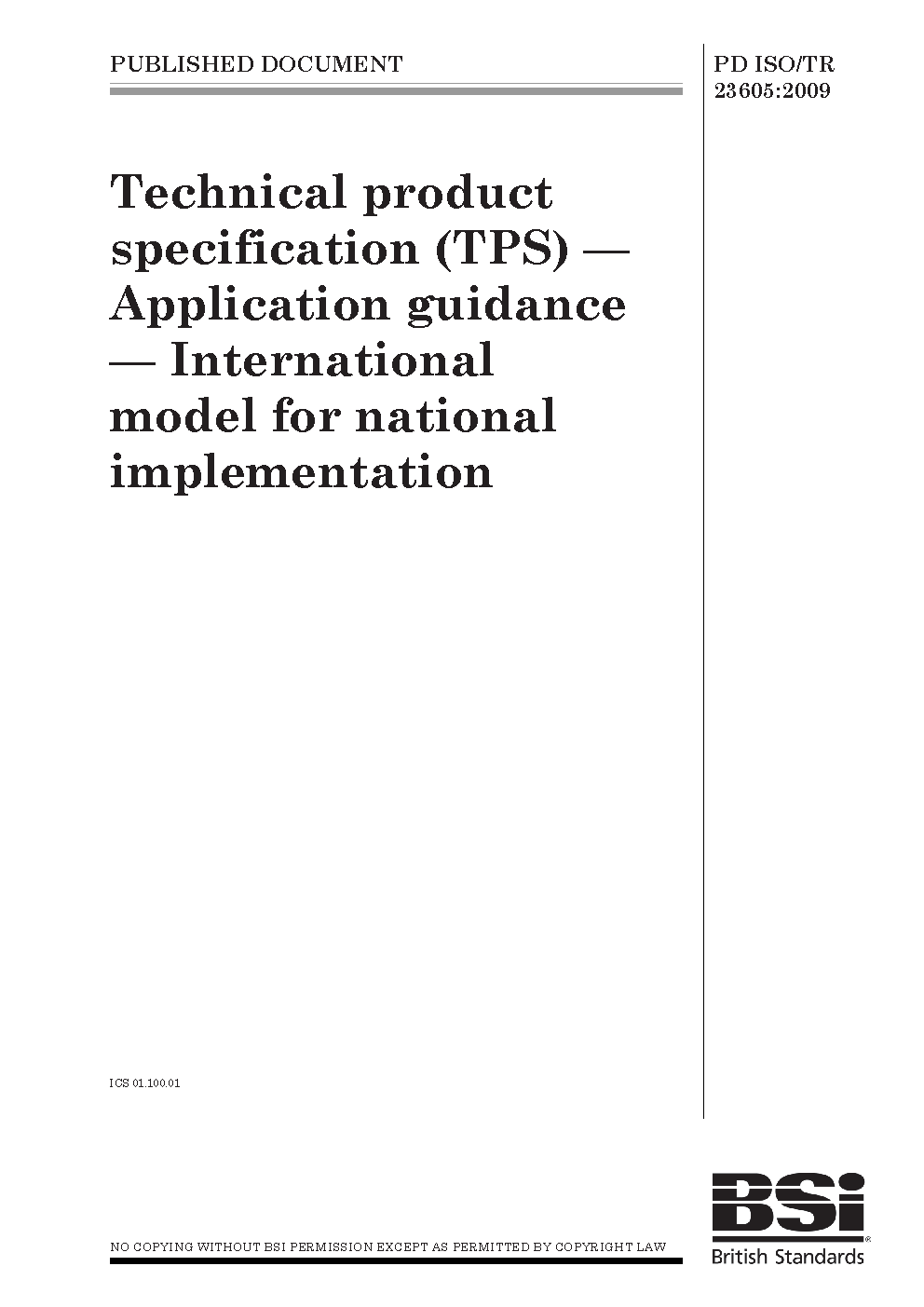 Technical product specification (TPS). Application guidance. International model for national implementation