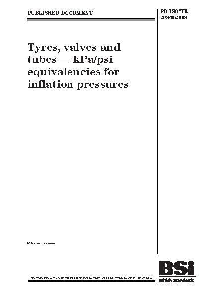 Tyres, valves and tubes. kPa/psi equivalencies for inflation pressures