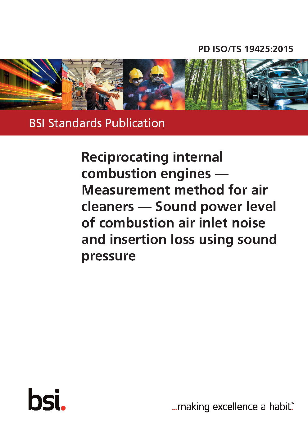 Reciprocating internal combustion engines. Measurement method for air cleaners. Sound power level of combustion air inlet noise and insertion loss using sound pressure