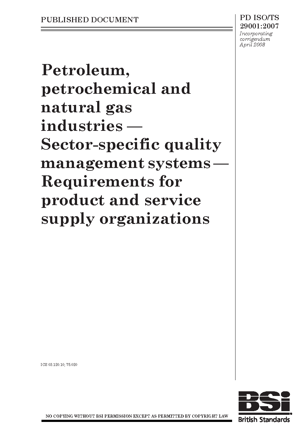 Petroleum, petrochemical and natural gas industries. Sector-specific quality management systems. Requirements for product and service supply organizations