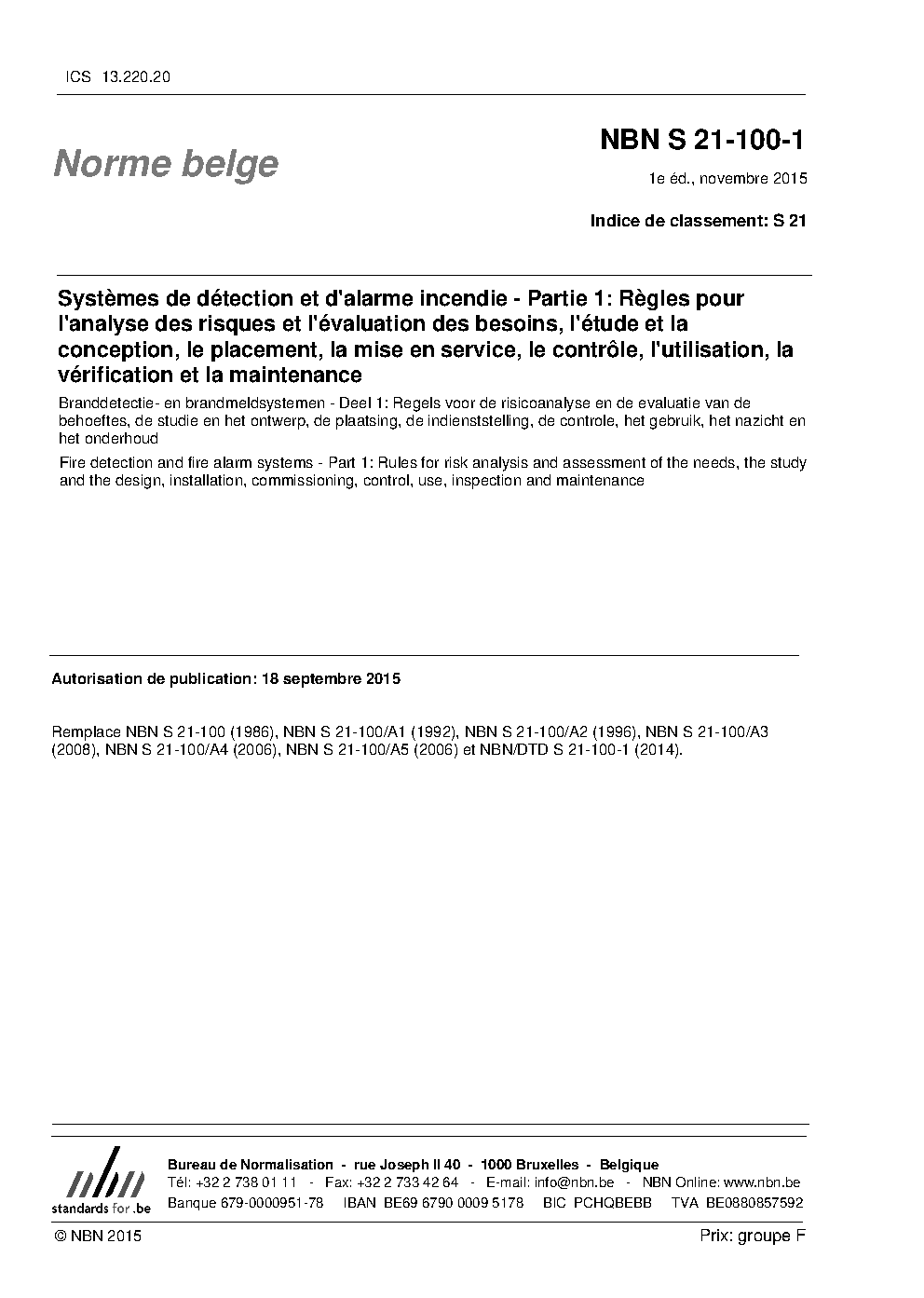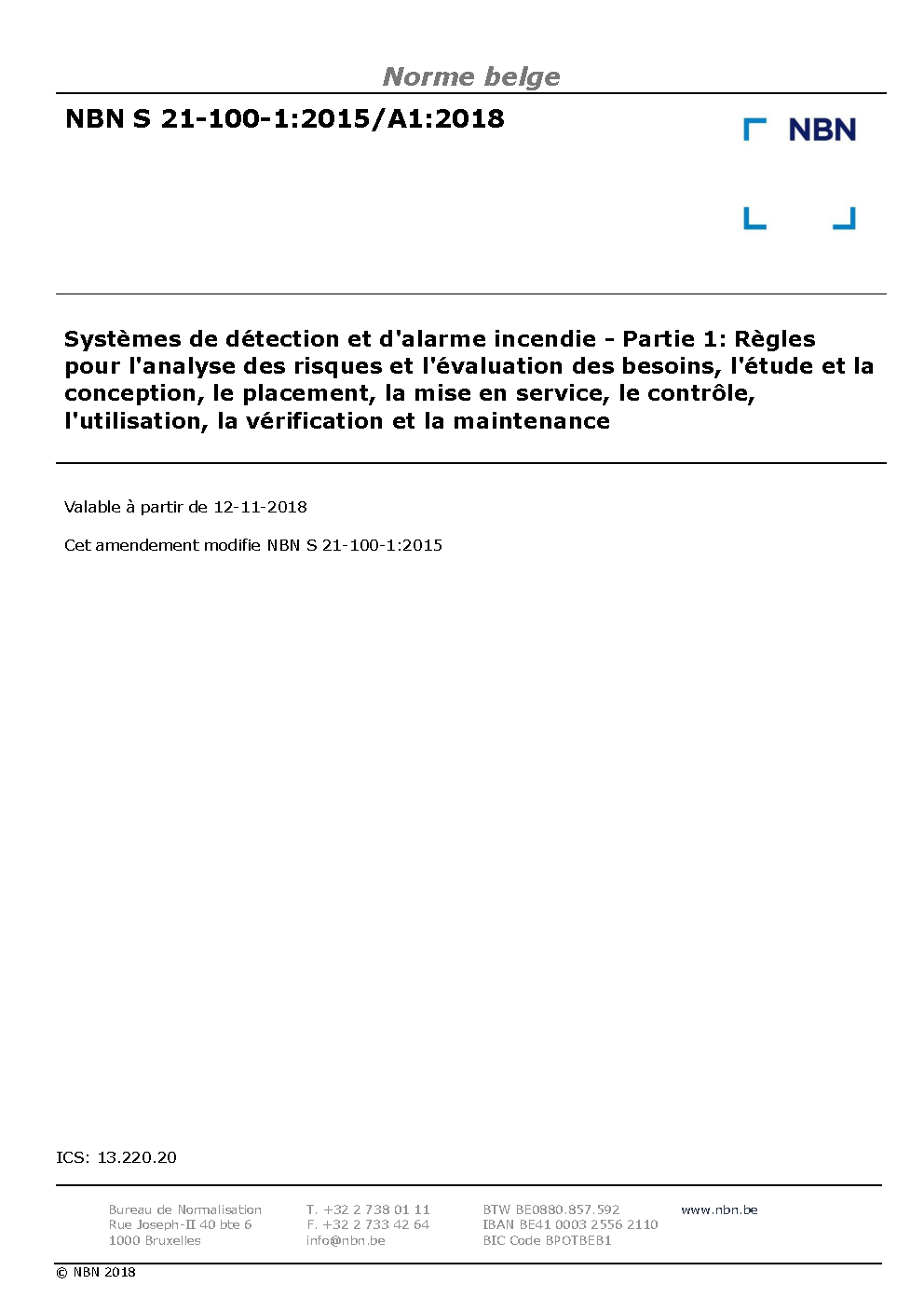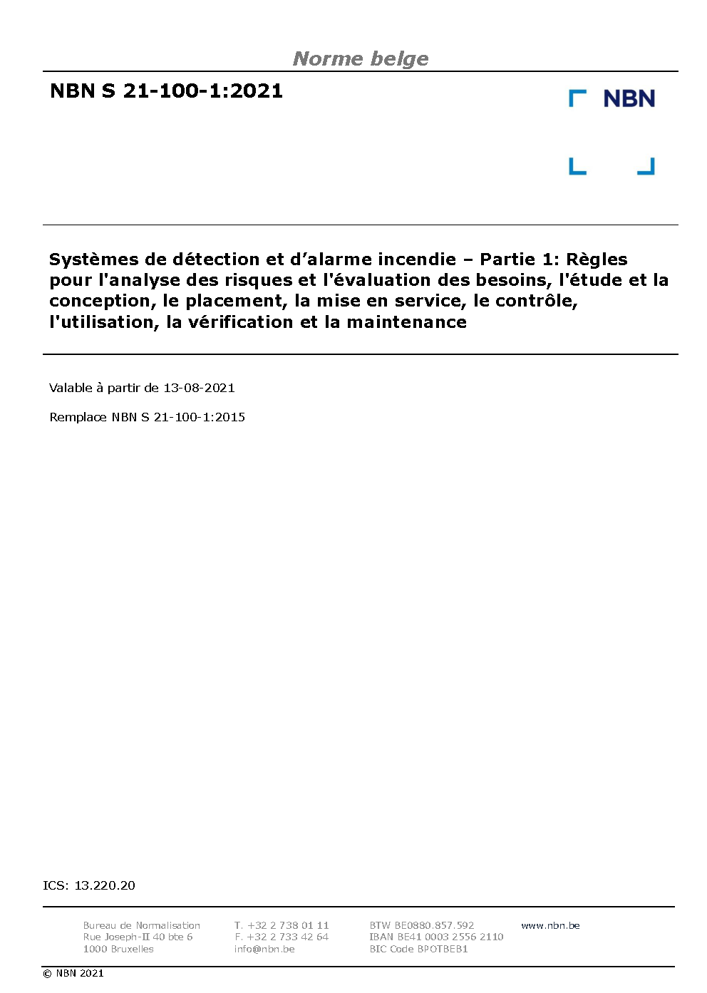 | Publisher | Bureau de Normalisation Belge (NBN) |