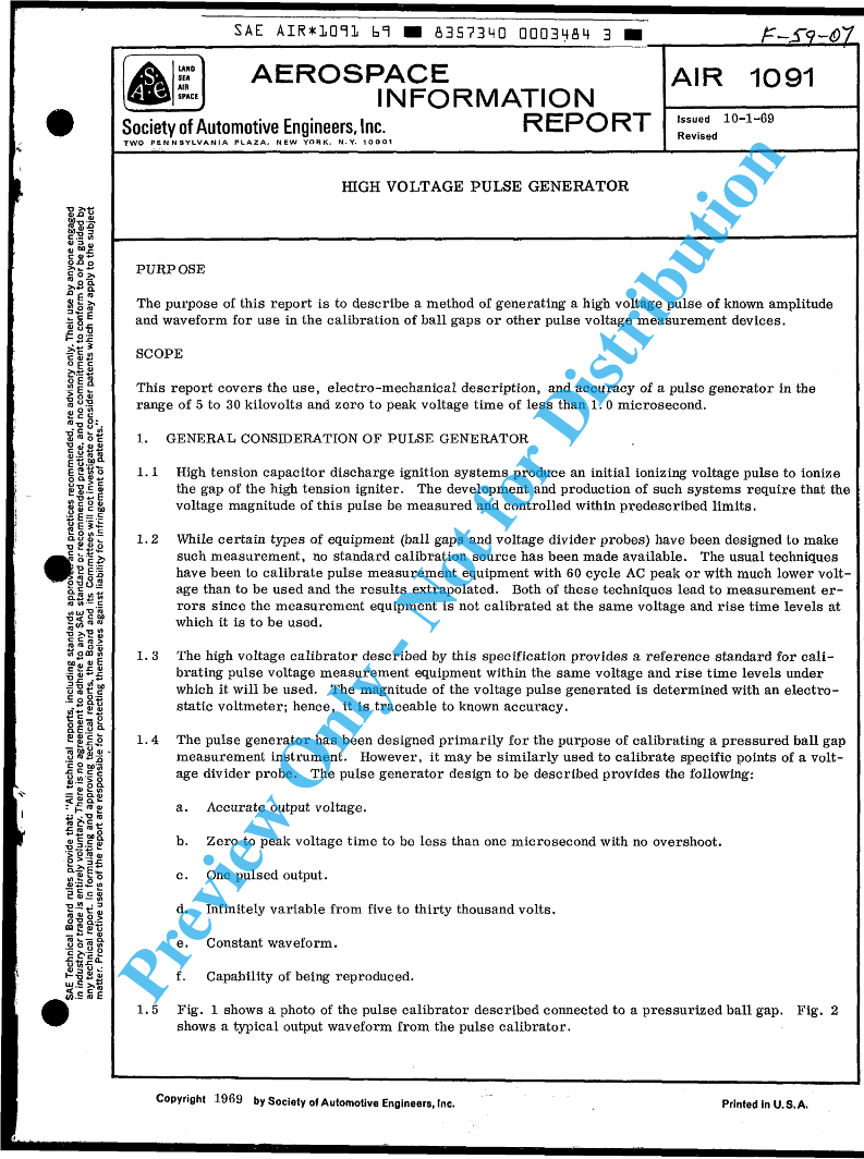 This report covers the use, electro-mechanical description, and accuracy of a pulse generator in the range of 5 to 30 kilovolts and zero to peak voltage time of less than 1.0 microsecond.