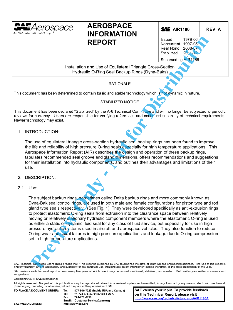 Installation and Use of Equilateral Triangle Cross-Section Hydraulic O-Ring Seal Backup Rings (Dyna-Baks) (Stabilized: Dec 2011)