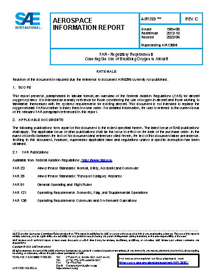 FAR – Regulatory Requirements Covering the Use of Breathing Oxygen in Aircraft
