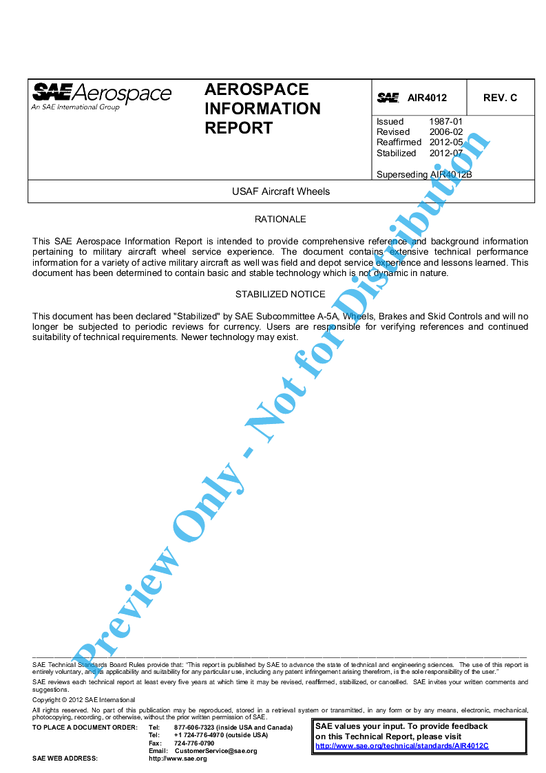 This SAE Aerospace Information Report (AIR) documents general technical data associated with many of the wheels used in the Air Force.