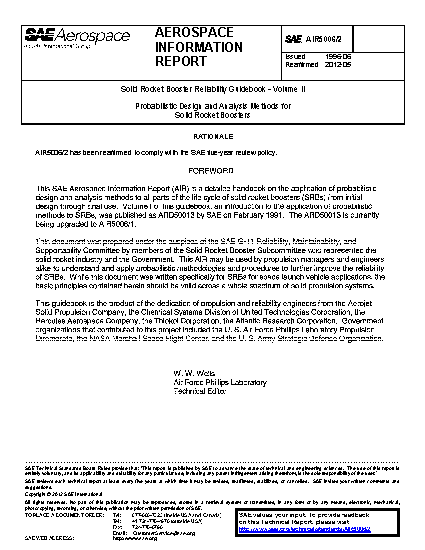 Solid Rocket Booster Reliability Guidebook - Volume IIProbabilistic Design and Analysis Methods for Solid Rocket Boosters