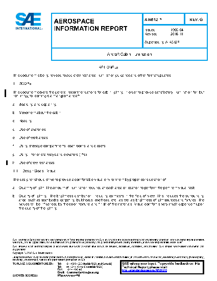This document covers the general recommendations for cabin lighting in order to provide satisfactory illumination for, but not limited to, commercial transport aircraft: