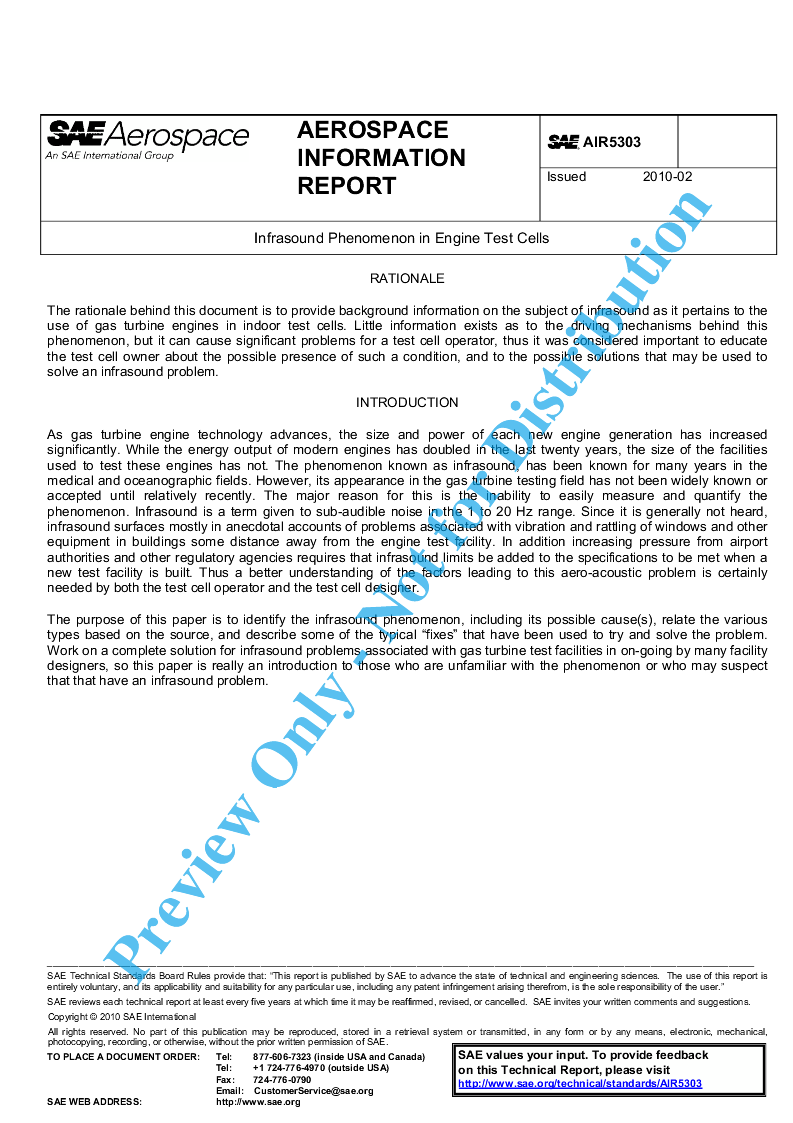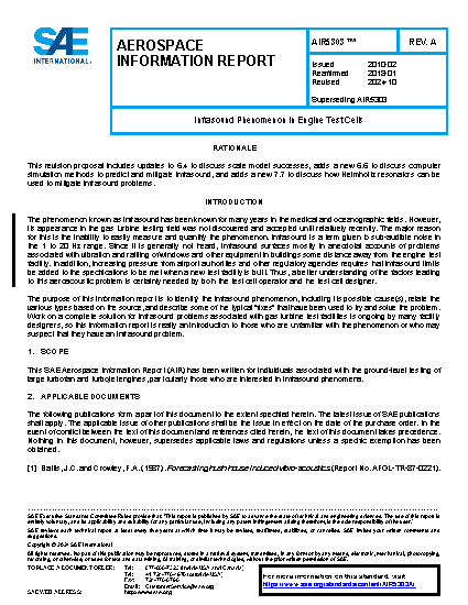 This SAE Aerospace Information Report (AIR) has been written for individuals associated with the ground level testing of large turbofan and turbojet engines, and particularly those who are interested in infrasound phenomena.