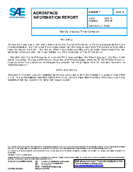 This document describes a method to correct engine thrust, measured in an indoor test cell, for the aerodynamic effects caused by the secondary airflow induced in the test cell by the engine operating in an enclosed environment in close proximity to an exhaust duct. While it is not recommended to be used to replace test cell correlation, it does provide a means to verify an existing thrust correlation factor.
